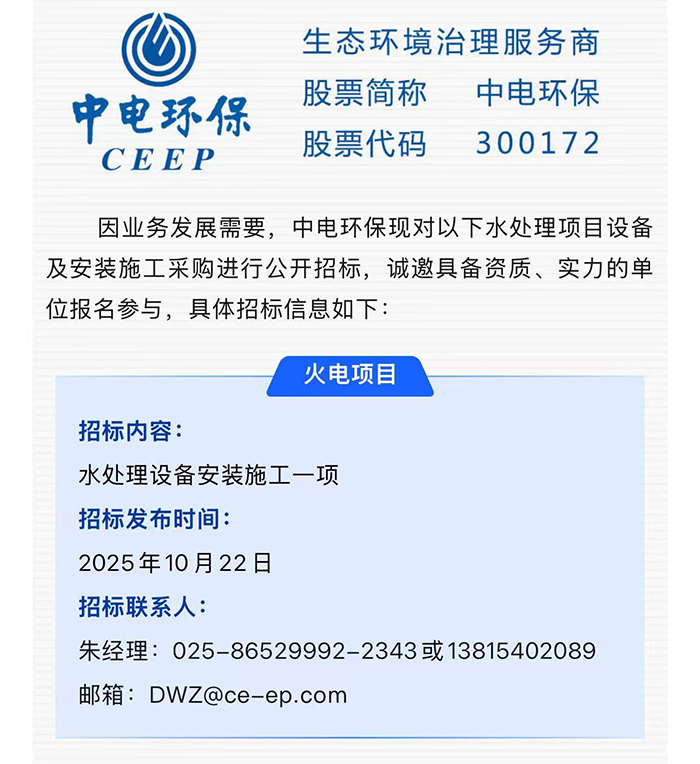 中电环保股份有限公司是南京市首家环保上市公司(股票简称:中电环保,股票代码:300172),南京环保产业协会会长单位,国家级联盟理事长单位,是生态环境治理服务商,主营(3+1):水务、固危废、烟气治理及产业创新平台,包括:工业水处理、污水处理及水环境综合治理;固危废土壤、污泥餐厨垃圾处理;烟气及VOCS治理;智慧环保;高端装备等。