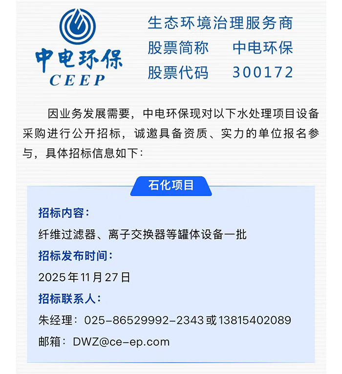 中电环保股份有限公司是南京市首家环保上市公司(股票简称:中电环保,股票代码:300172),南京环保产业协会会长单位,国家级联盟理事长单位,是生态环境治理服务商,主营(3+1):水务、固危废、烟气治理及产业创新平台,包括:工业水处理、污水处理及水环境综合治理;固危废土壤、污泥餐厨垃圾处理;烟气及VOCS治理;智慧环保;高端装备等。