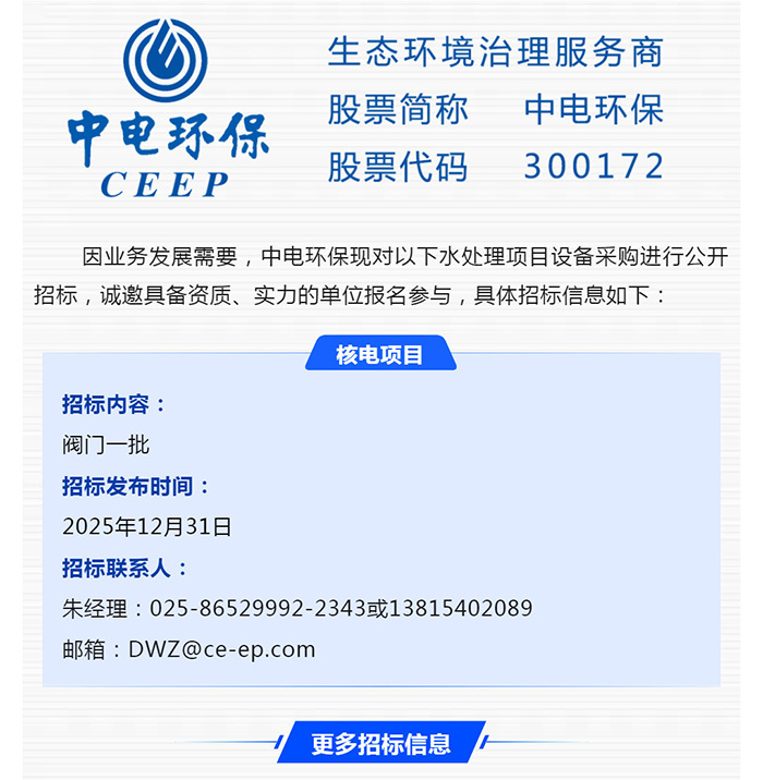中电环保股份有限公司是南京市首家环保上市公司(股票简称:中电环保,股票代码:300172),南京环保产业协会会长单位,国家级联盟理事长单位,是生态环境治理服务商,主营(3+1):水务、固危废、烟气治理及产业创新平台,包括:工业水处理、污水处理及水环境综合治理;固危废土壤、污泥餐厨垃圾处理;烟气及VOCS治理;智慧环保;高端装备等。